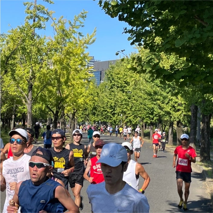 タイムを狙うランナーさん、一所懸命ひたすら完走を狙うランナーさん。熱い熱い大阪城公園でした。